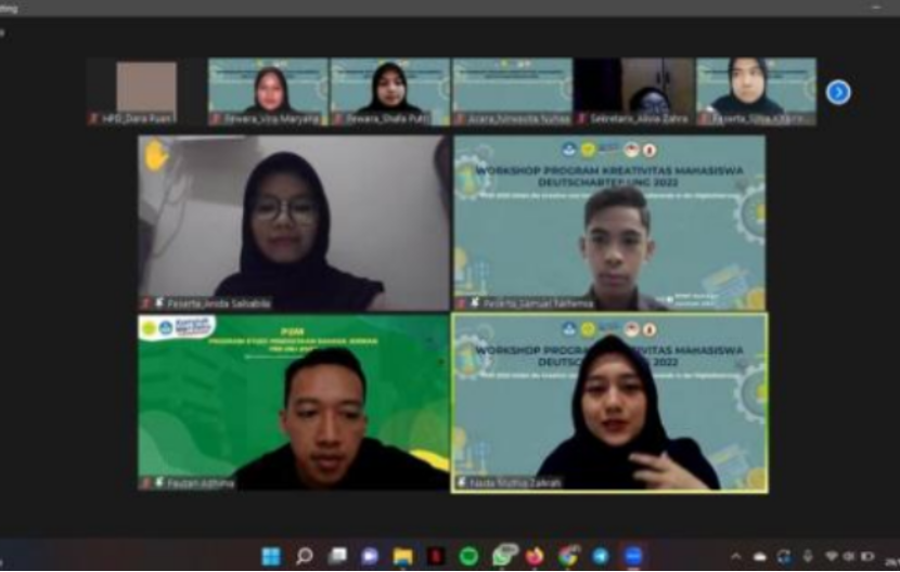 Pada Sabtu, 29 Oktober 2022, BEMP Pendidikan Bahasa Jerman Universitas Negeri Jakarta menyelenggarakan Lokakarya Program Kreativitas Mahasiswa (PKM) secara daring melalui Zoom Meeting. Kegiatan ini bertujuan untuk memberikan sosialisasi, pelatihan penulisan proposal, dan motivasi kepada mahasiswa prodi Pendidikan Bahasa Jerman agar aktif berpartisipasi dalam program PKM.