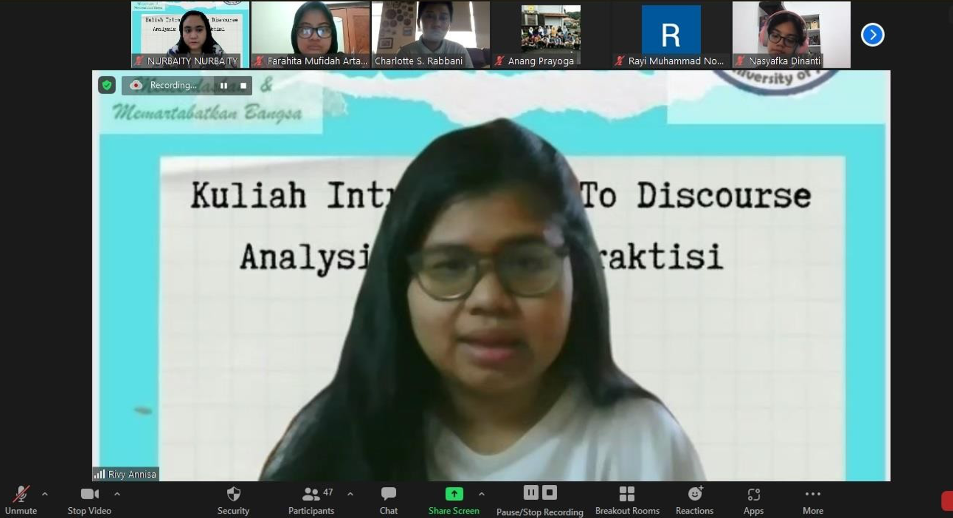 Program Studi Sastra Inggris FBS UNJ kembali menghadirkan praktisi industri dalam kegiatan kuliah praktisi semester 115 tahun akademik 2021/2022. Kali ini, mahasiswa berkesempatan belajar langsung dari Rivy Annisa Tumin, S.S., M.M., seorang digital strategist dari IDN Creator Network, yang membawakan materi seputar content writing, digital strategy, dan influencer marketing.